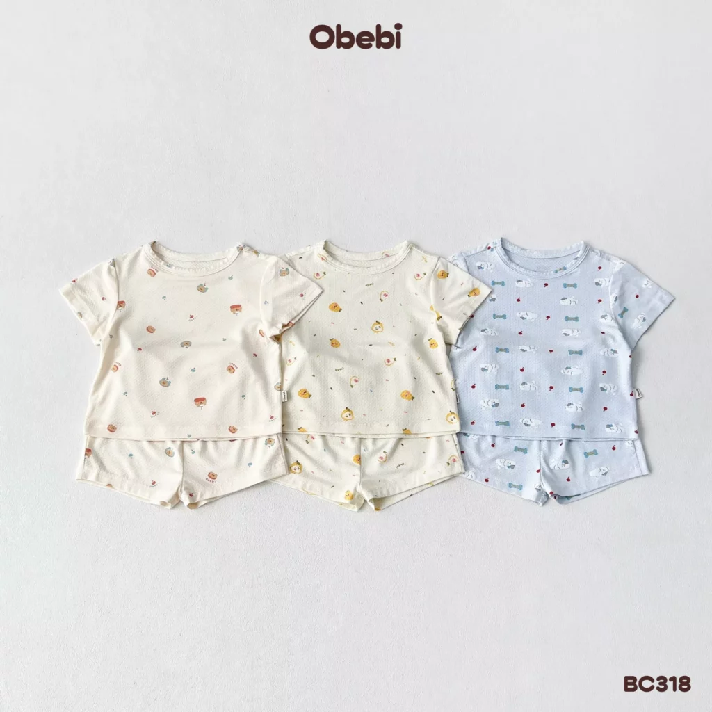 BC318 – Bộ cộc mùa hè vải modal mềm mát in hoạt tiết nhân vật Obebi