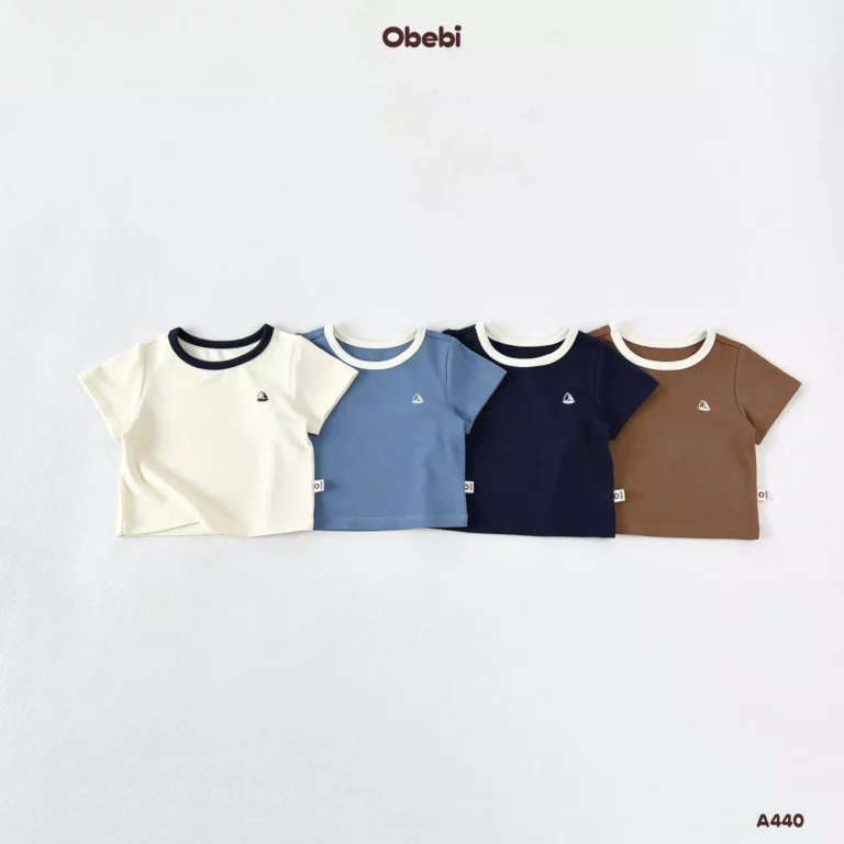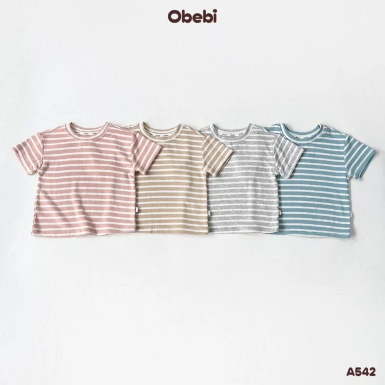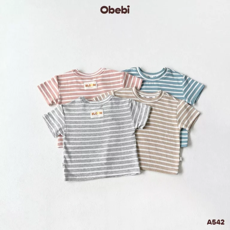 A542-Áo thun kẻ trẻ em mùa hè gắn mác in độc đáo Obebi