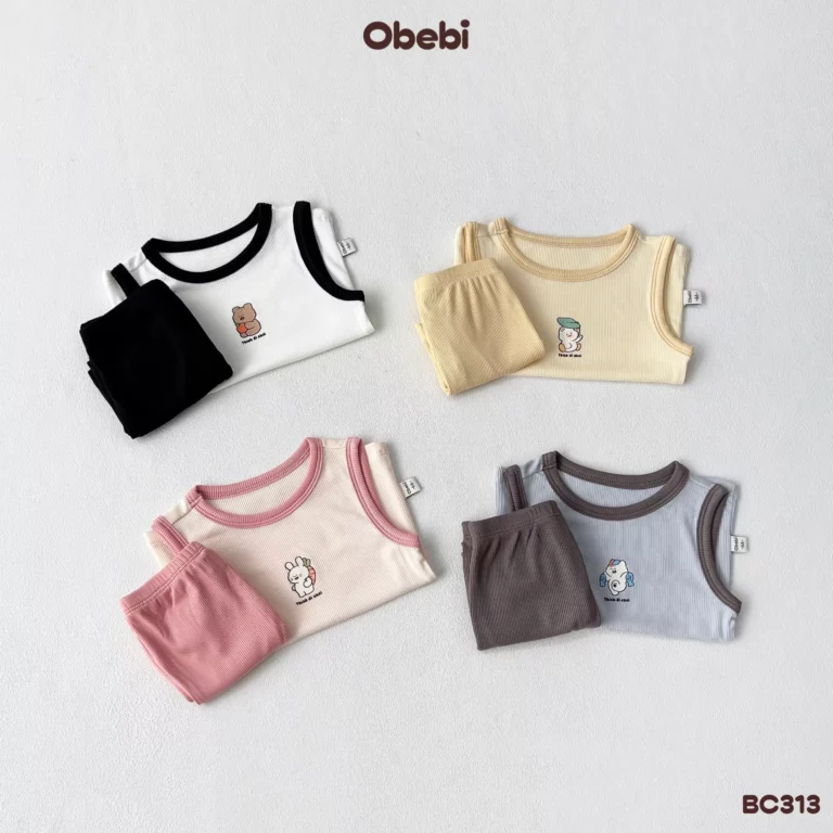 BC319-Bộ ba lỗ vải kháng khuẩn in gấu Obebi