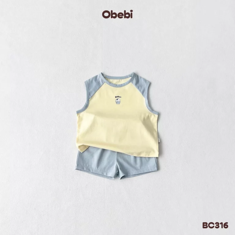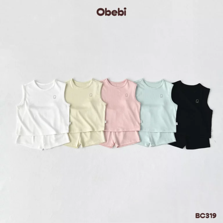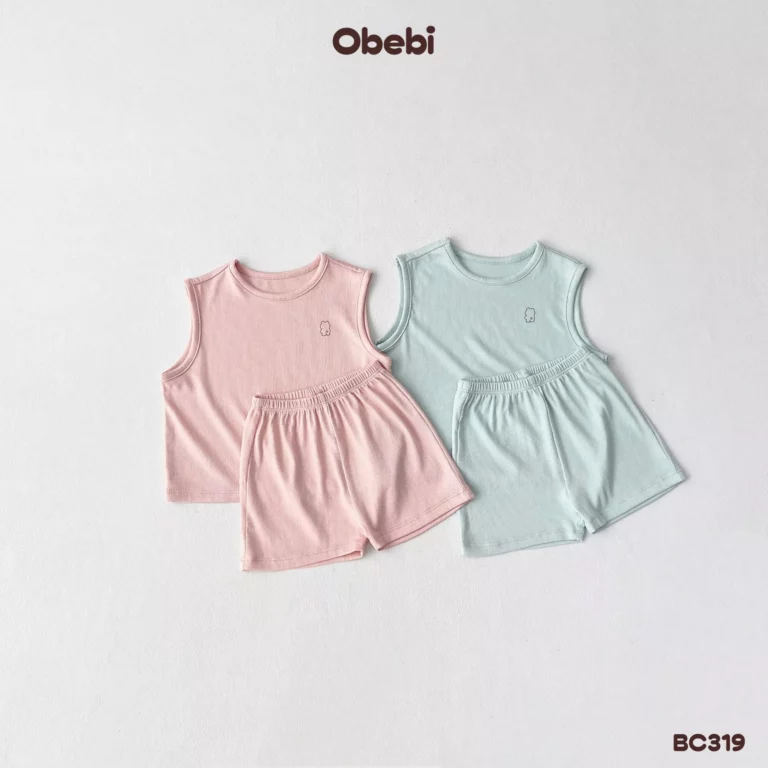 BC313-Bộ ba lỗ phối màu, vải gân sợi tre Obebi