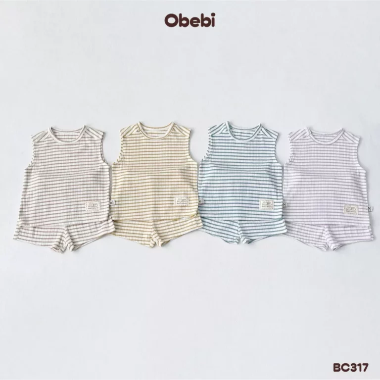 BC317-Bộ ba lỗ kẻ đính mác Obebi
