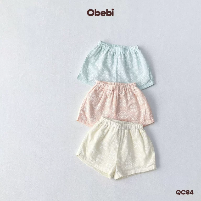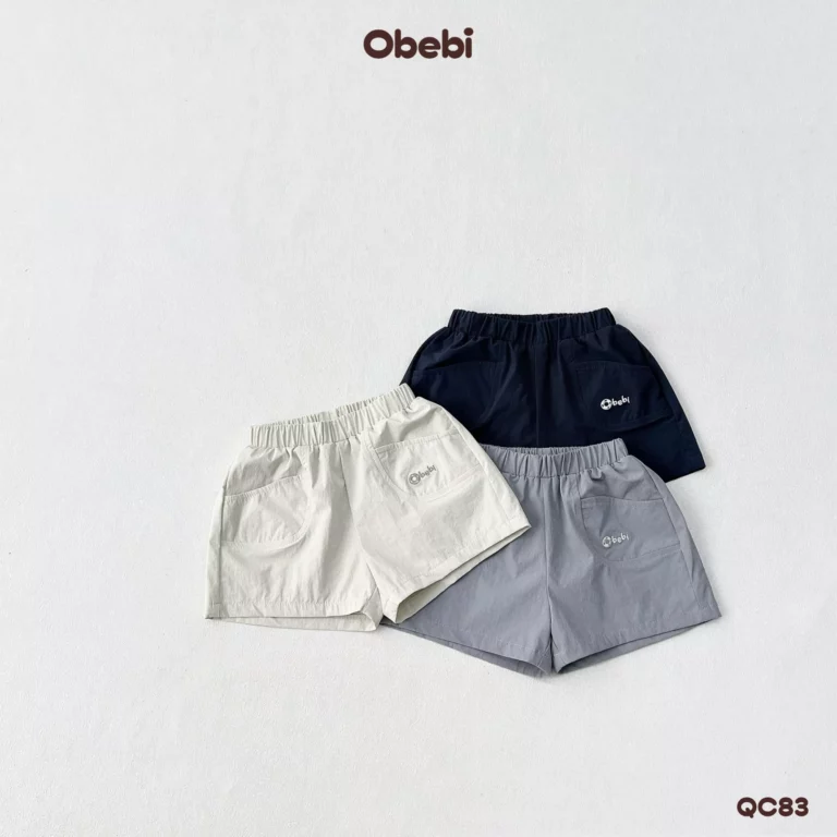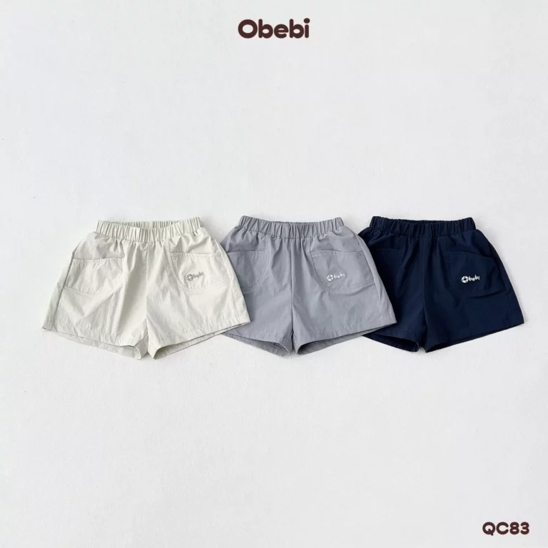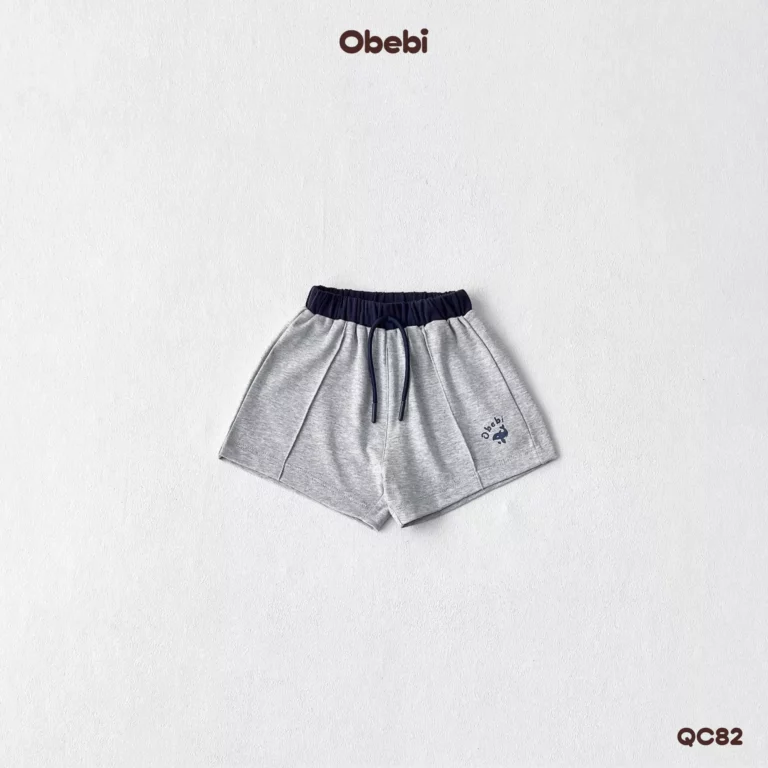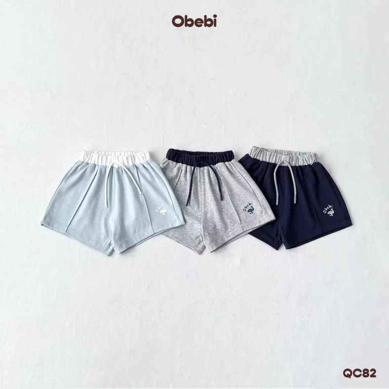 QC82-Quần Sooc đùi vải cotton in hình cá heo vui nhộn mùa hè Obebi