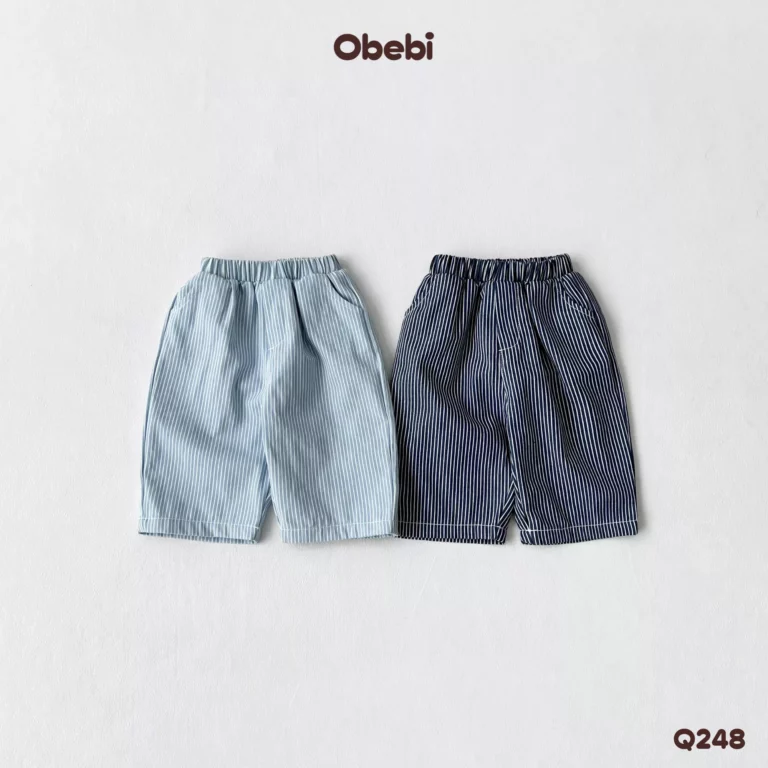 Q248-Quần jean kẻ trẻ em mùa hè dáng xuông Obebi