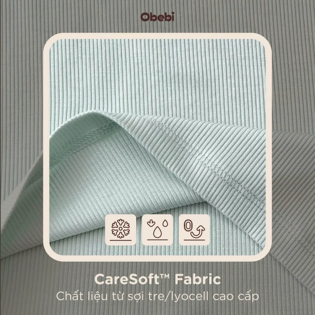 Kết cấu gân dọc của CareSoft™ không chỉ tạo tính thẩm mỹ tinh tế mà còn tăng độ thoáng khí và co giãn cho vải. Màu xanh mint thanh mát — nhìn đã thấy mát rồi, mẹ nhỉ!