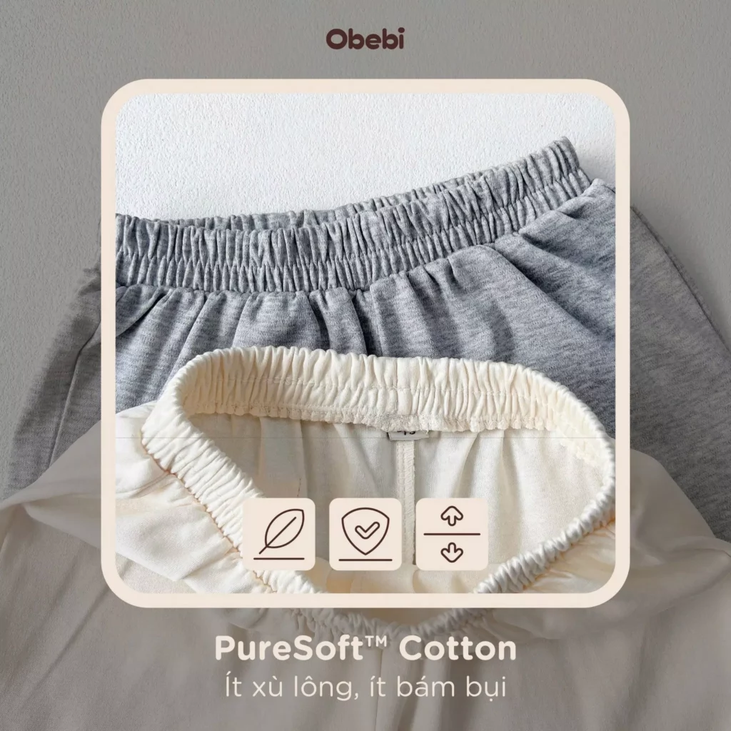 ![PureSoft Cotton Obebi — quần cạp thun cotton xám và kem ít xù lông ít bám bụi]