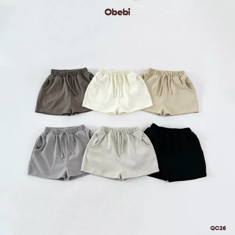 QC73 – Quần đùi trẻ em mùa hè thêu túi sau Obebi