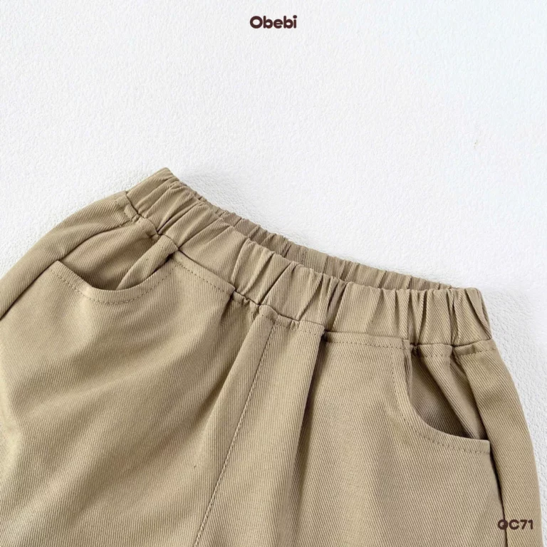 Q246 – Quần kaki trẻ em mùa hè mềm mại thêu túi Obebi