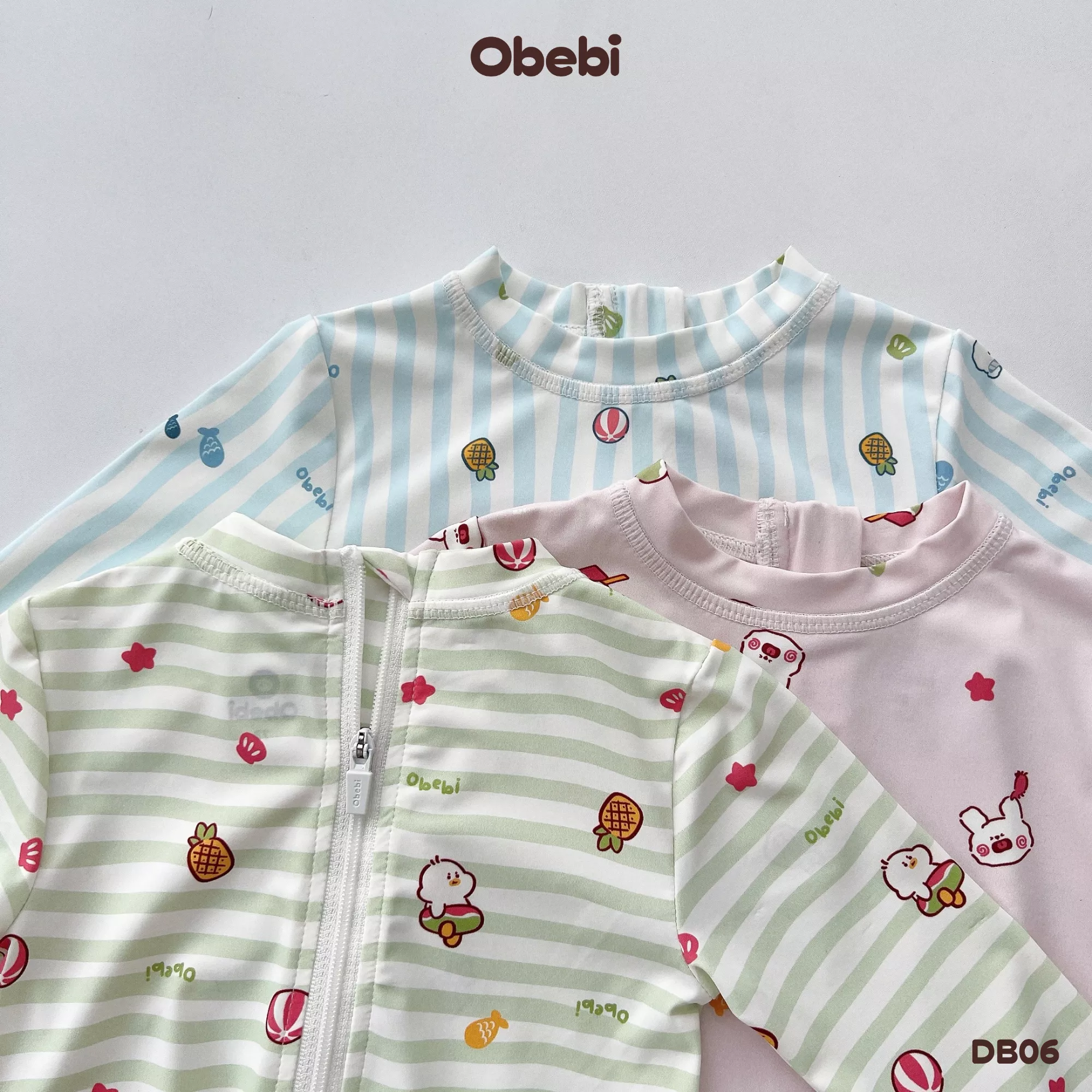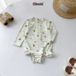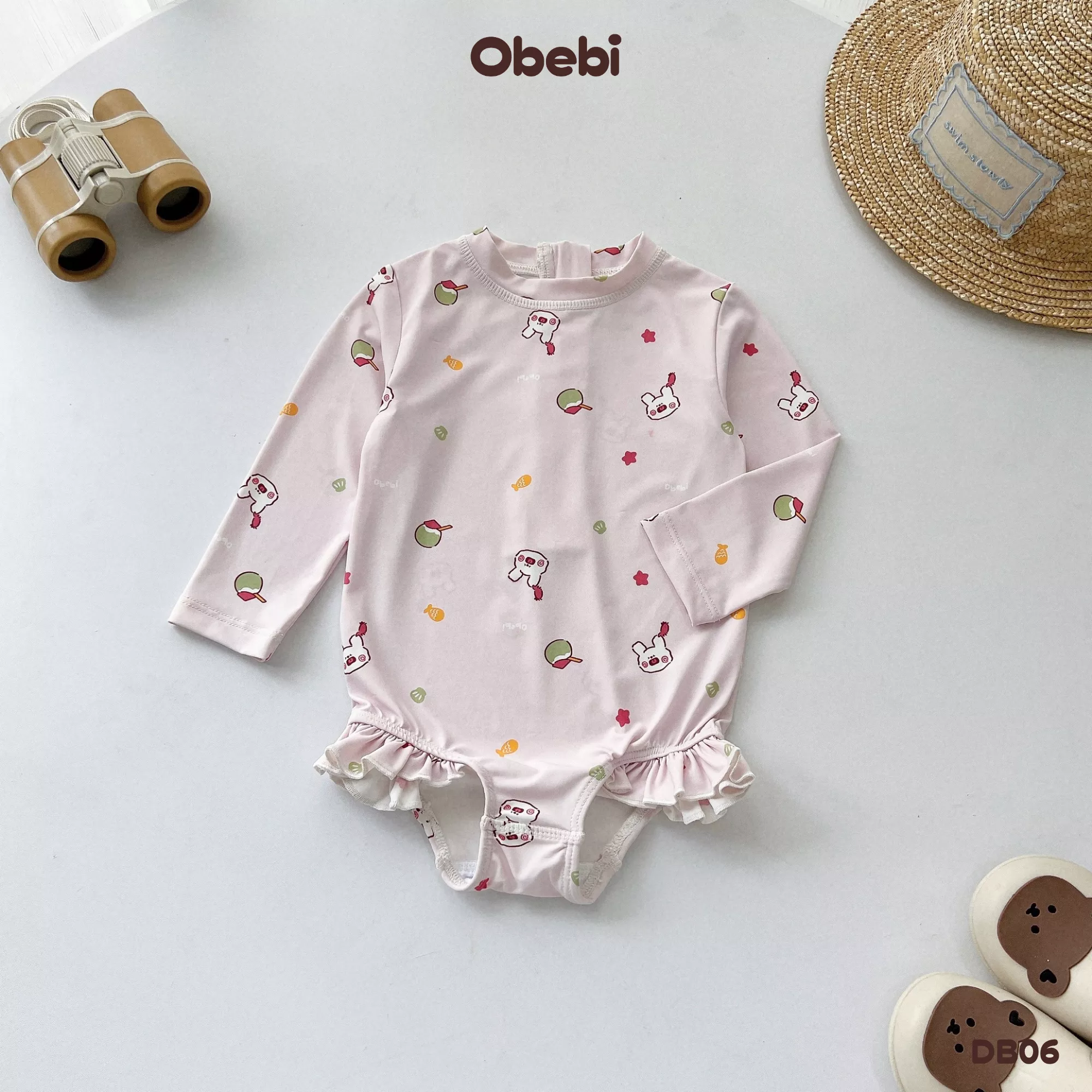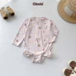 ✔ Kiểu dáng: Bộ bơi liền mảnh màu basic kết hợp màu trung tính dễ mặc cùng hình in nhân vật Obebi ôm cá heo bơi lượn đáng yêu.