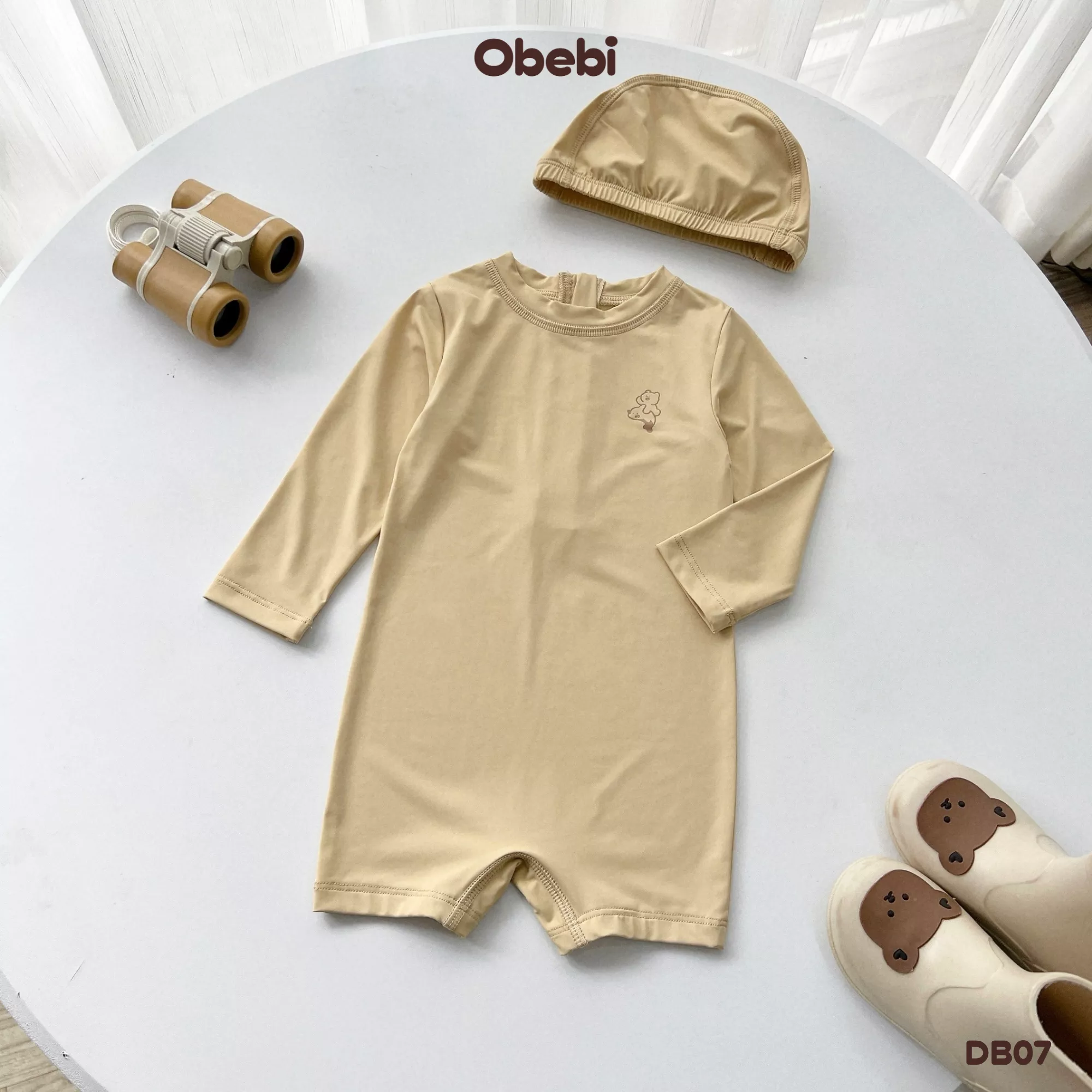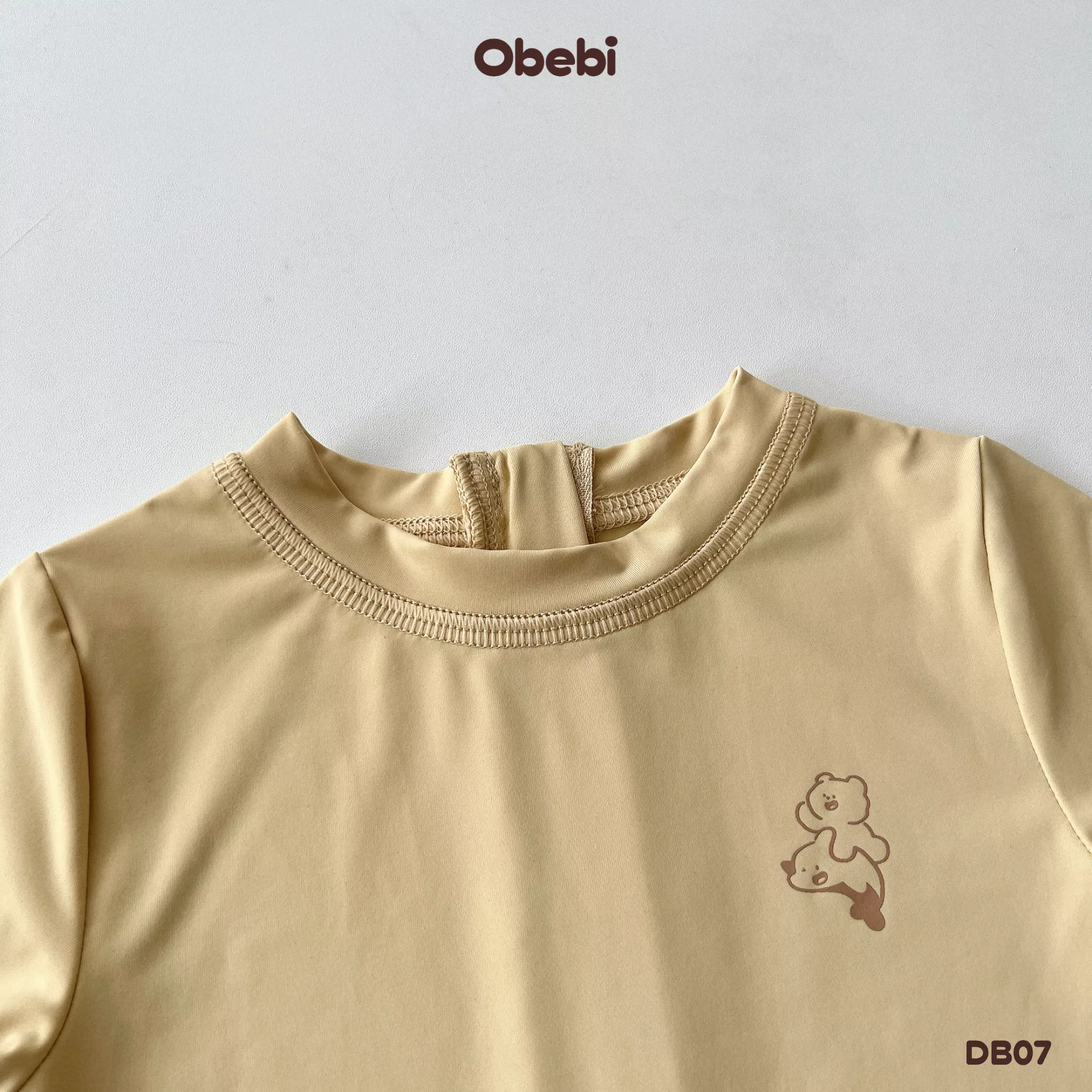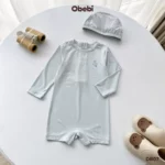 ✔ Kiểu dáng: Bộ bơi liền mảnh màu basic kết hợp màu trung tính dễ mặc cùng hình in nhân vật Obebi ôm cá heo bơi lượn đáng yêu.