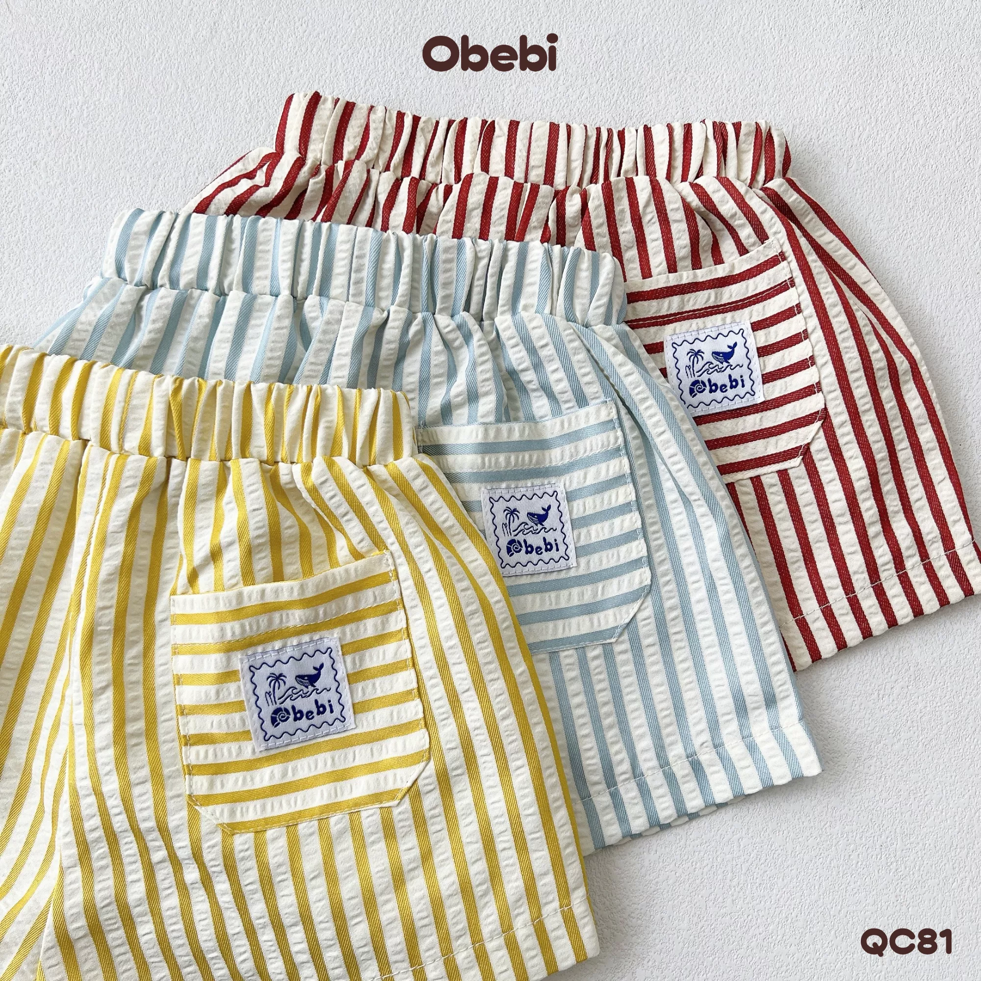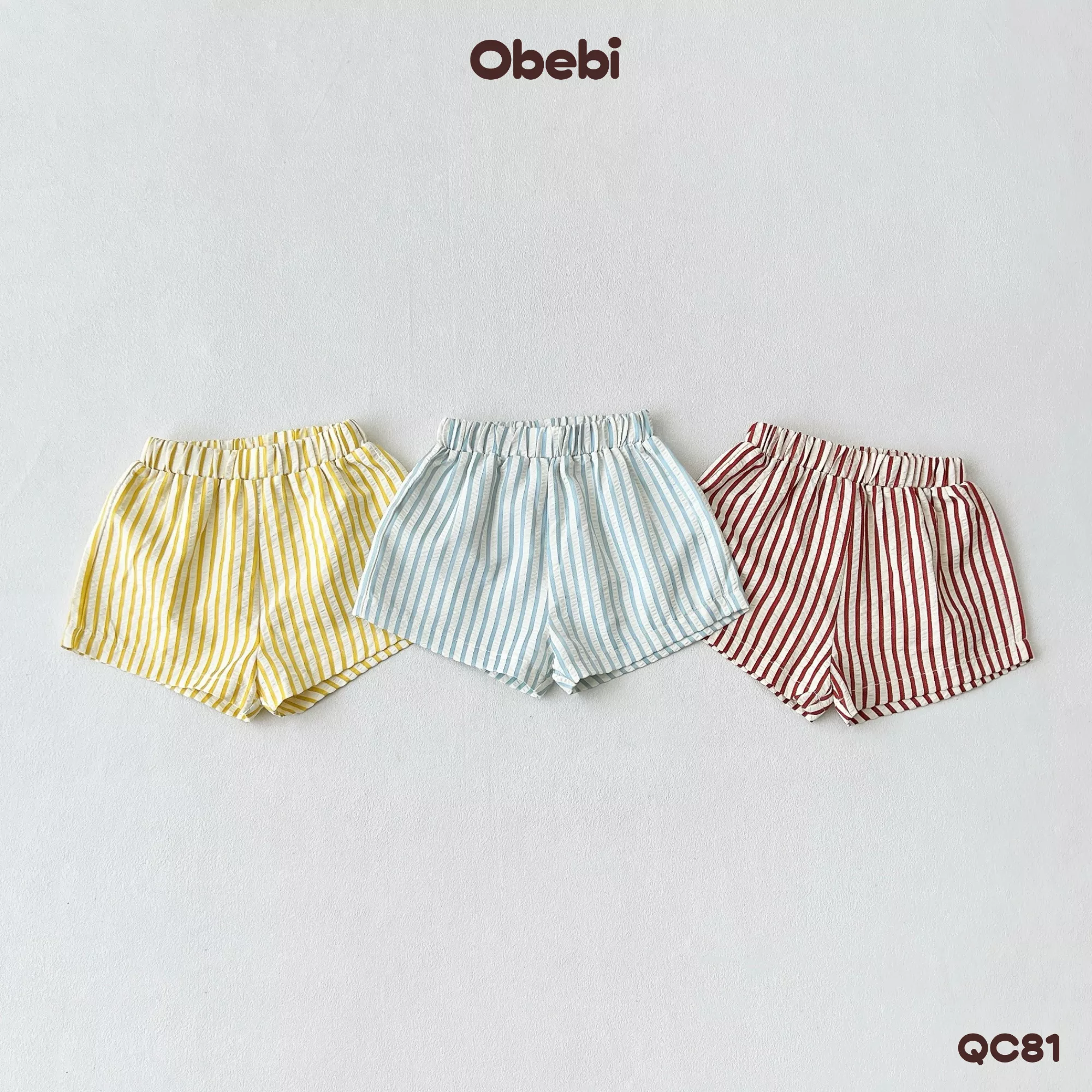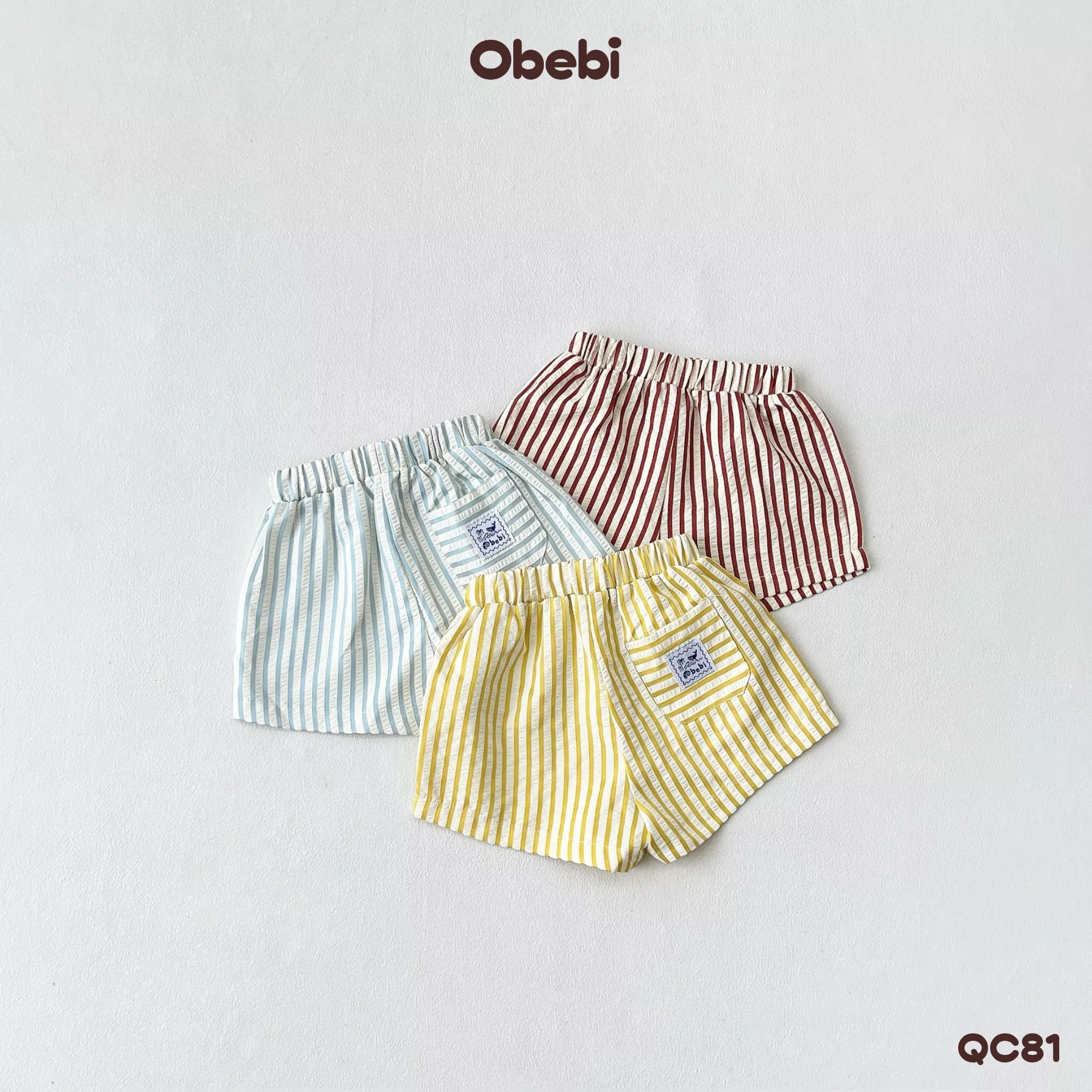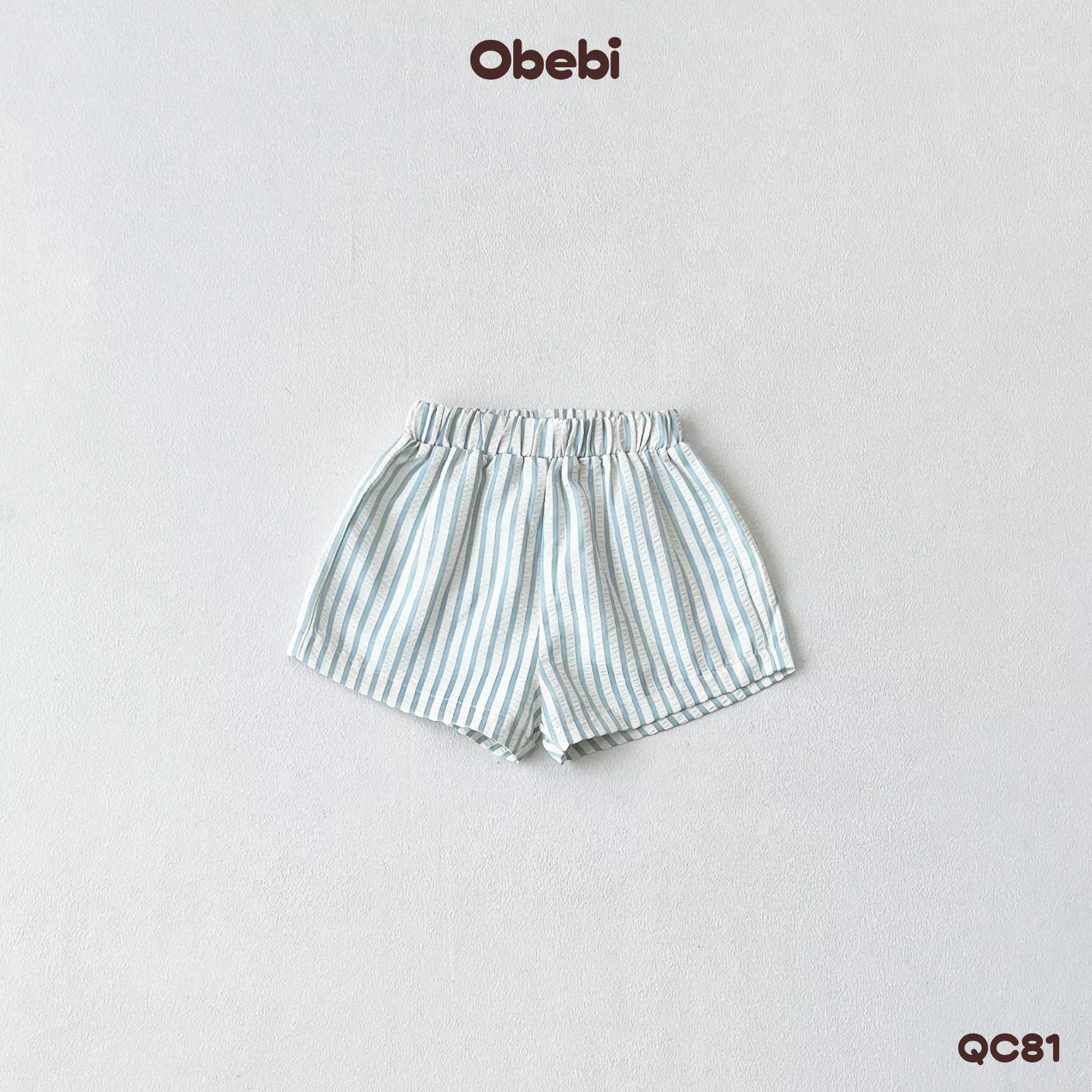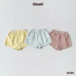 QC81-Quần đùi trẻ em vải kẻ xanh mát mùa hè Obebi