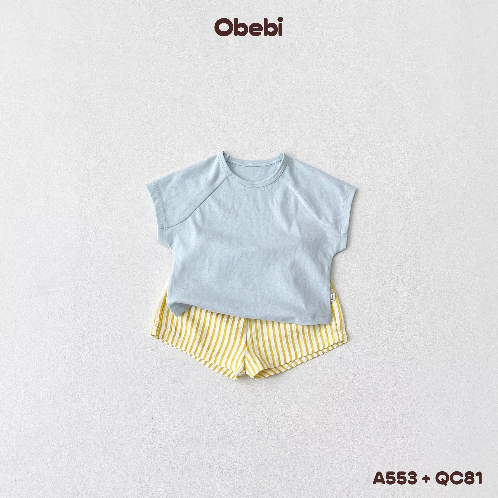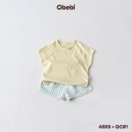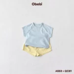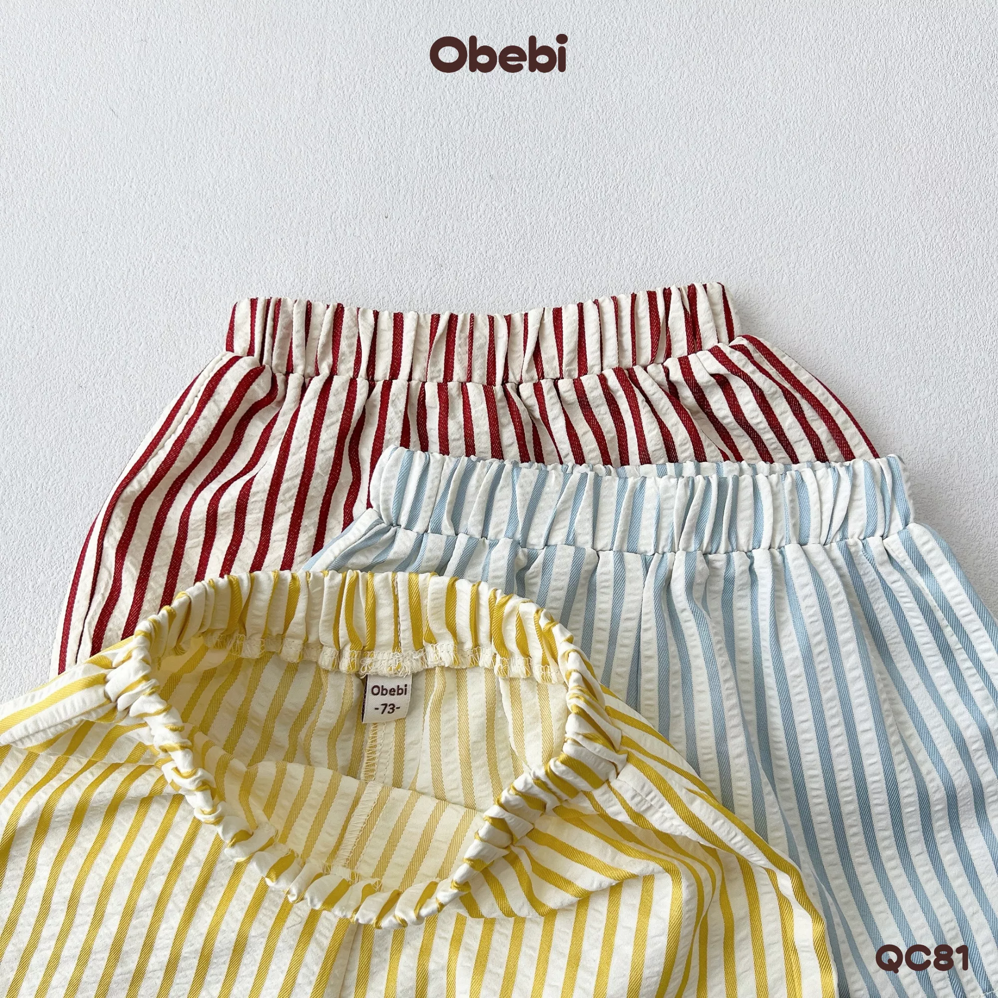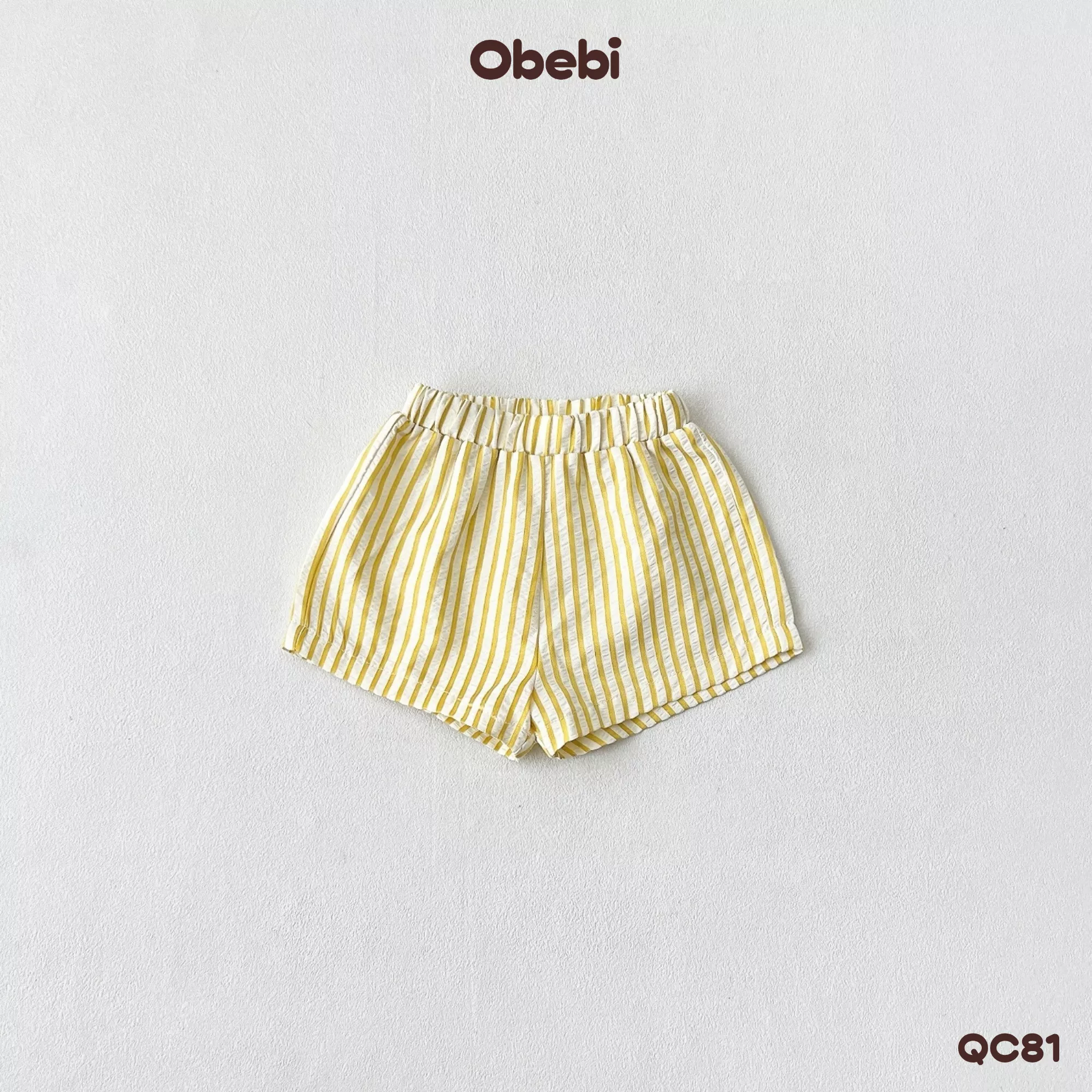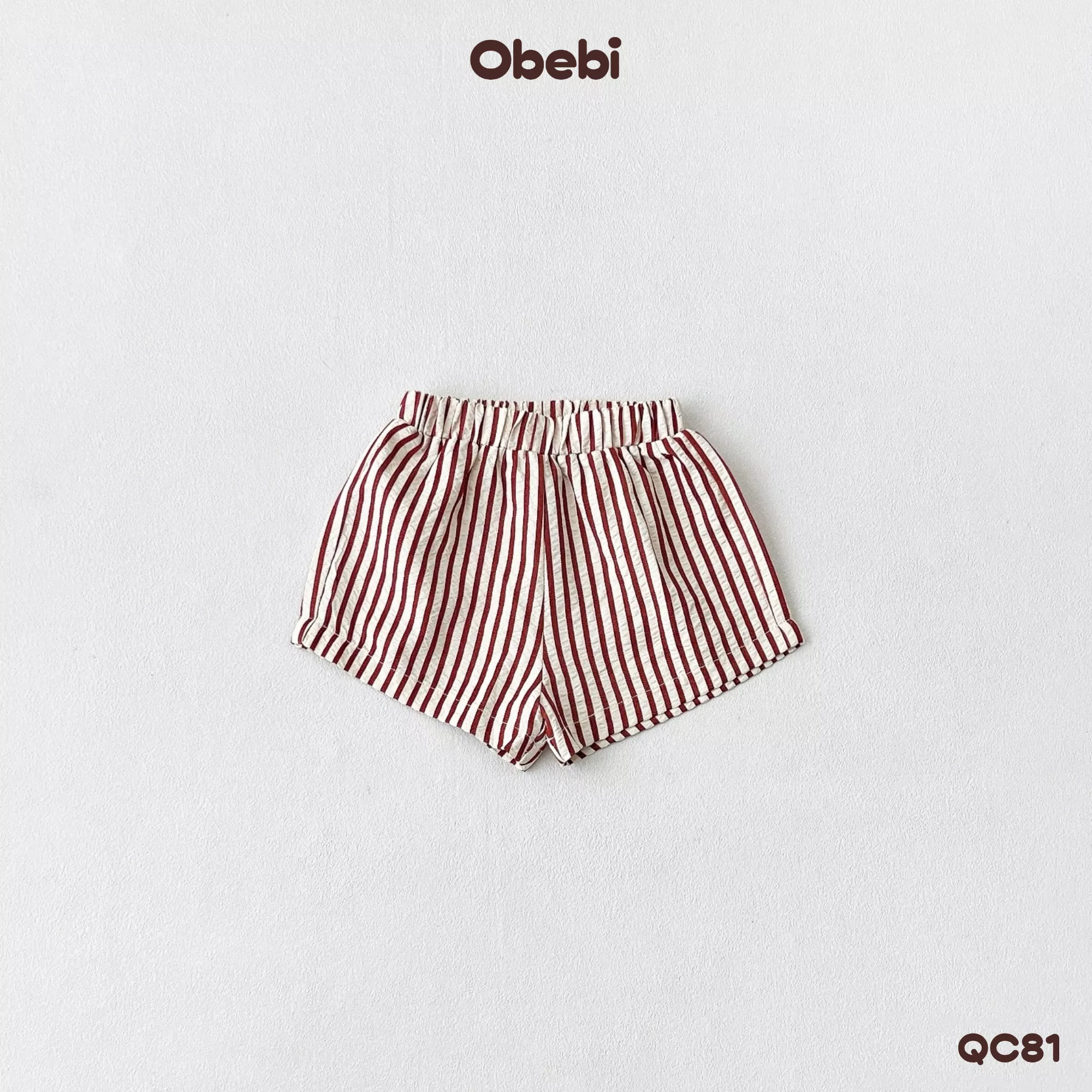 QC81-Quần đùi trẻ em vải kẻ xanh mát mùa hè Obebi