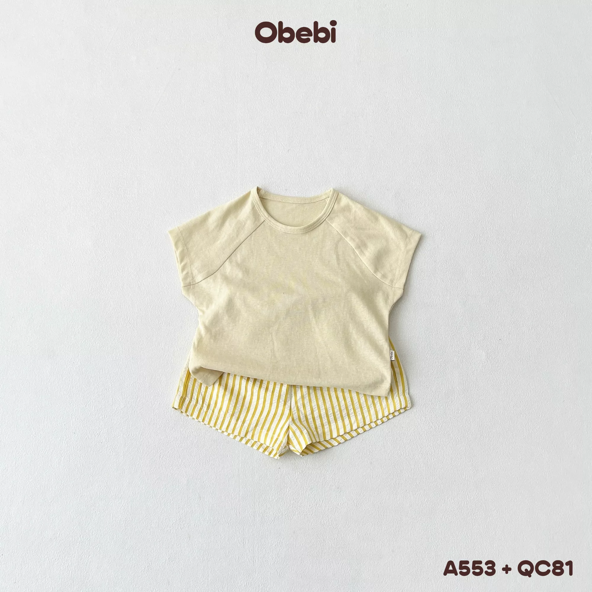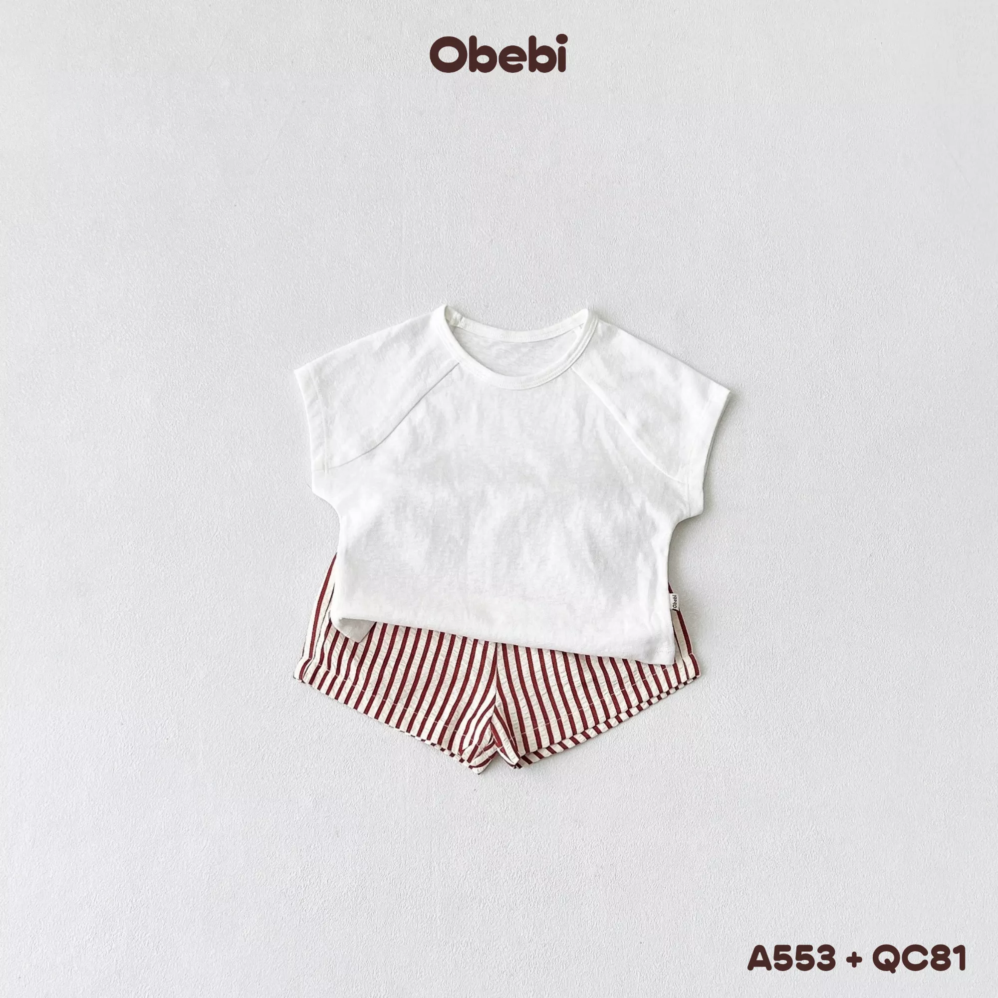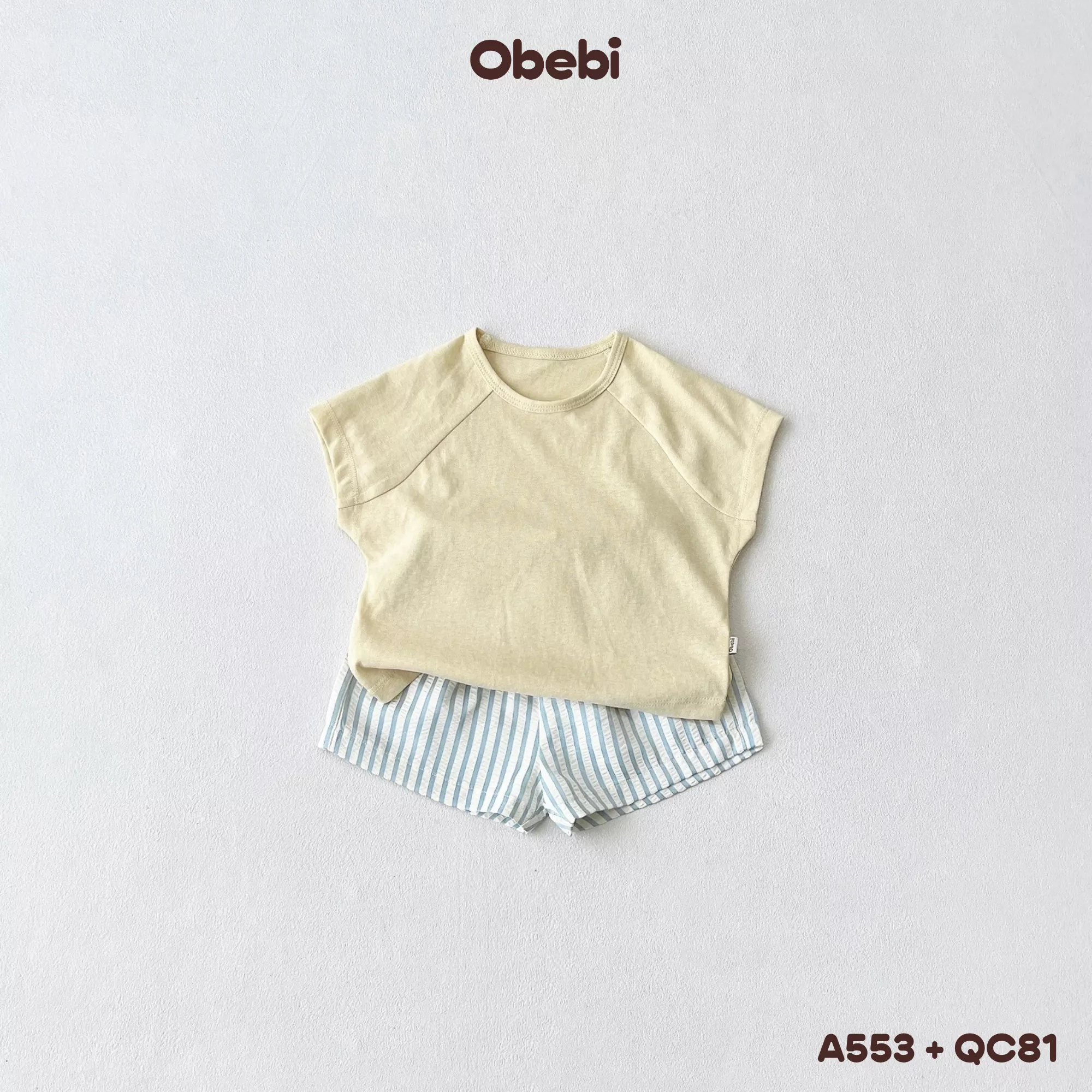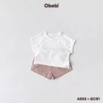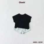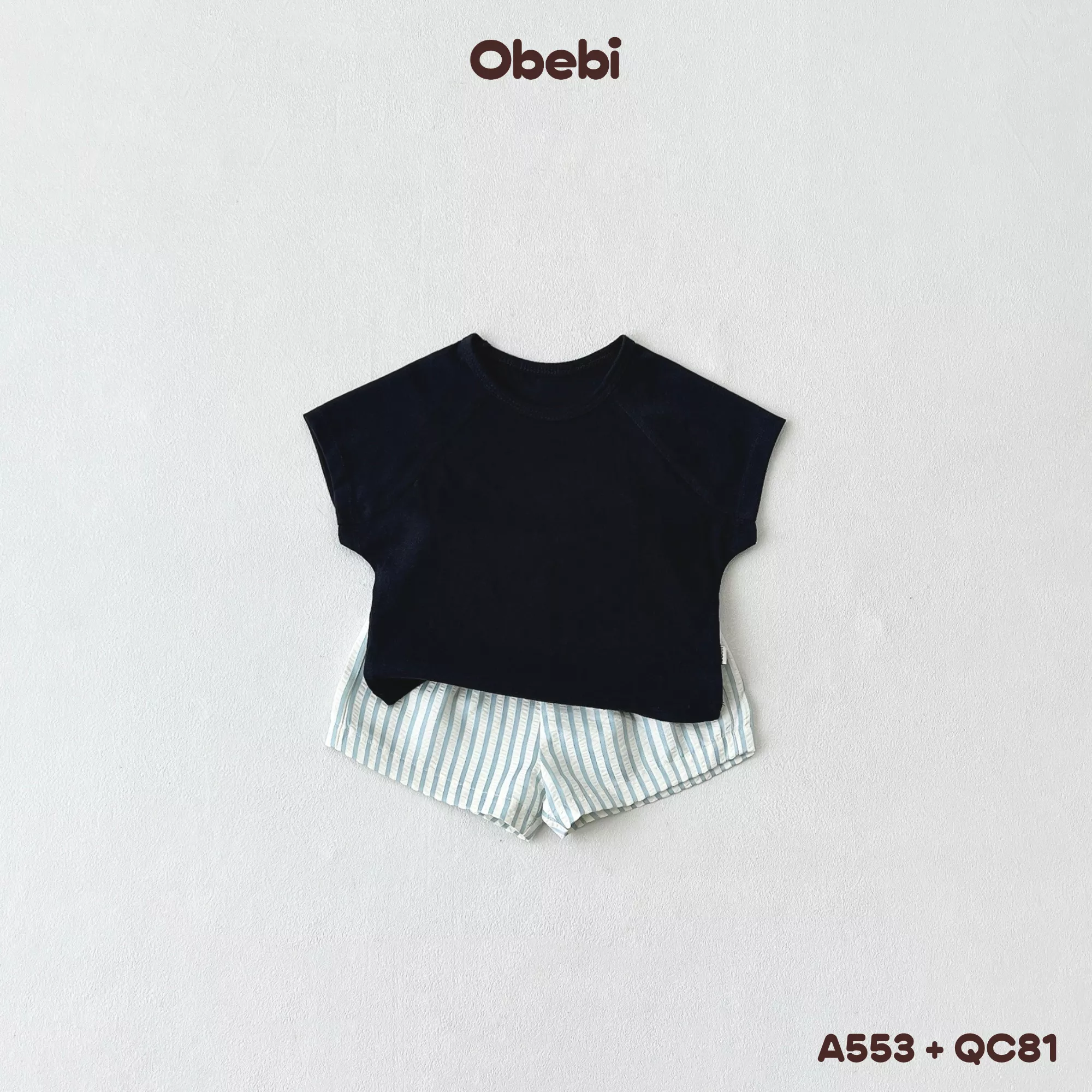QC81-Quần đùi trẻ em vải kẻ xanh mát mùa hè Obebi
